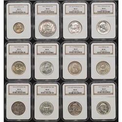 This traditional "Type Set" of commemorative half dollars (including the Isabella quarter dollar and Lafayette silver dollar) comes to us housed in NGC holders, consecutively numbered with the exception of one coin. A remarkable offering for bidders! For the most part, these have natural toning in varying shades of gold, antique gold, russet, etc., although a number of the pieces in the set are fully brilliant with sparkling silver-white hues. Numerous gems here, and none are below MS63, grades as follows: