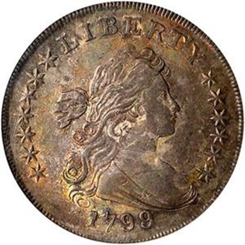 Uses the same obverse #1 as in Bolender-1 and Bolender-3 in which the last 9 is punched over a previous 8. Definitive as such: the only overdate die of the year. Bolender-2 is mated to Reverse C in which a die crack extends from the border down through the curved part of D in UNITED. Of the three overdate die varieties this year, Bolender-2 is the scarcest, with perhaps 250 to 450 extant in all grades (though most are Very Fine or less). Lustrous throughout underneath medium to deep "antique silver" finish, with the reverse somewhat more silvery and lighter in color than the obverse. A refreshing exception at this high grade level.