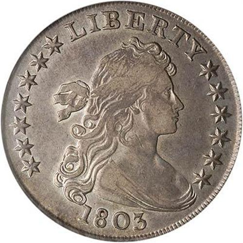Any time you find a choice Extremely Fine specimen with nice surfaces, we suggest you bid; this well struck 1803 has pleasing neutral gray toning with silvery accents around some of the devices. Two tone streaks occur on the reverse at the left side, but the entire surface is well above average for this grade and era. The eagle is extra sharp; Liberty's hair, while not complete, compares favorably with other, higher grade 1803 examples.