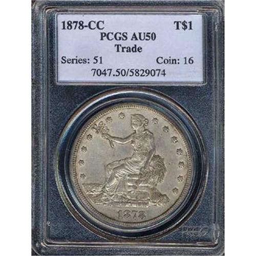 Scarcest of all CC-mint Trade dollars with only 97,000 struck (and a number of these later melted at the mint). Attractive light antique gray toning, lustrous and uncleaned.
