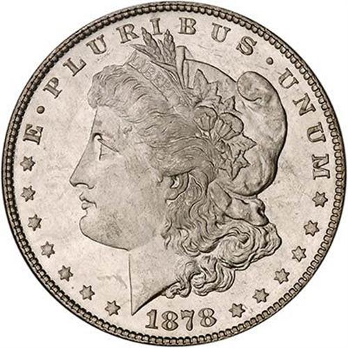 Bright mint luster characterizes the surfaces on this lovely piece. Razor-sharp on all devices, including the key areas of the hair strands above the ear (often seen weak) and the full detail in the feathers of the breast, on this "Reverse of 1879" coin, the eagle's breast is more rounded and in higher relief than before. Strong underlying 8 tail feathers seen below the modified 7 tail feather eagle.