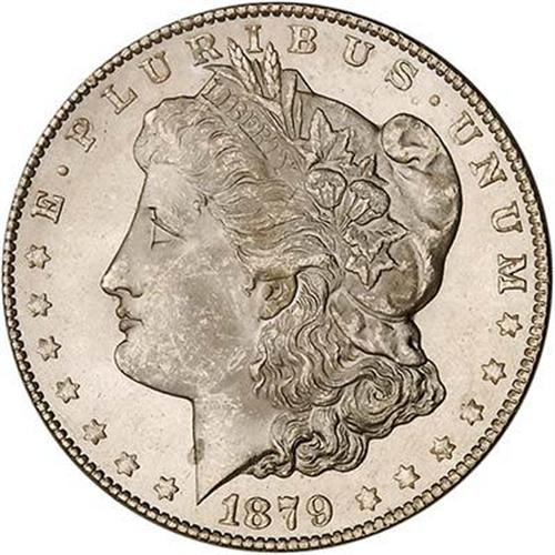 This fully lustrous coin exhibits otherwise thick mint frost that thins to modest brightness in the fields. Both sides are fully struck and carefully preserved with some delicate silver-gray overtones and a small tone spot at the lower neck. Minor weakness occurs at the lower leaves in the wreath, plus the bow that binds the two halves of the wreath. Worthy of inclusion in a high grade collection of CC-mint Silver Dollars and always desirable from a die with the perfect mintmark.