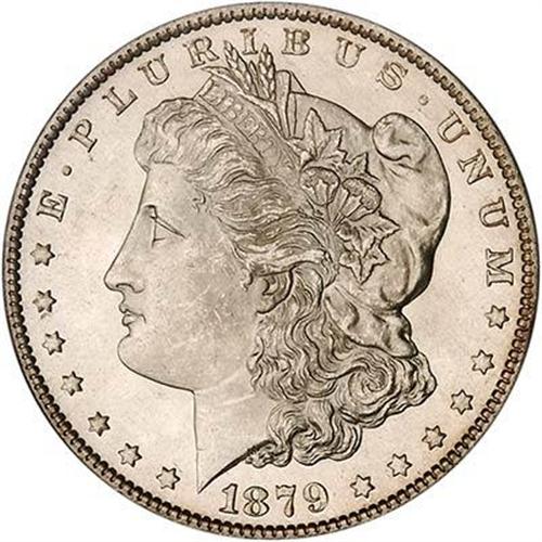 Whereas the 1879 and 1879-S can be found in MS65 quality without too much trouble, this isn't the case when it comes to 1879-O, a long-recognized grade rarity. The surfaces are untoned, bright silver in color, and quite lustrous. Fully struck in all areas with pinpoint detailing on the tips of the feathers in the eagle's breast and wings.