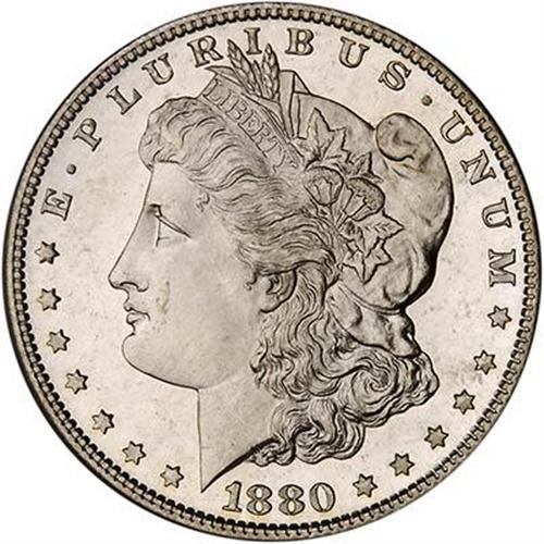 Small toned area on the cheek. Dazzling bright surfaces and uncommon beauty in a gem quality overdate 1880-S. It is easy to see this piece was delivered a full, sharp blow by the prooflike dies.