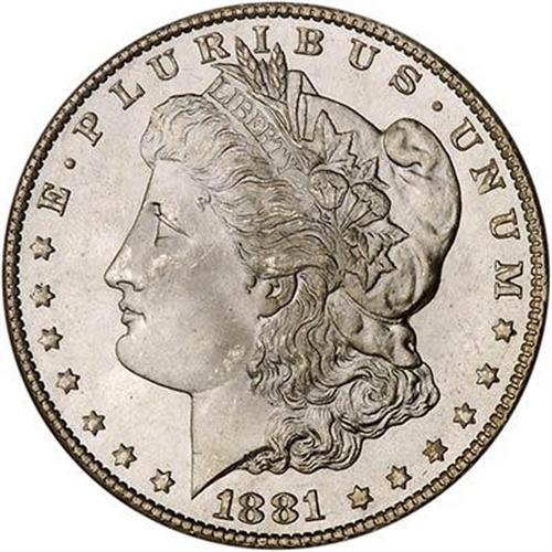 Gorgeous mint fresh dazzle. A sharp impression was left by the recoil of the dies that struck this 1881-CC. Extra frosty cartwheel luster is a characteristic of the popular CC-mint dates, and this coin exhibits it in almost sinful amounts!