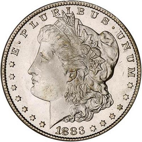 A brilliant and extremely lustrous Superb Gem that has dazzling fields and devices. Struck with exactitude rarely found on an 1883-CC silver dollar. Plentiful in bagmarked Mint State due to the Treasury hoard, but highly prized in this outstanding state of preservation.