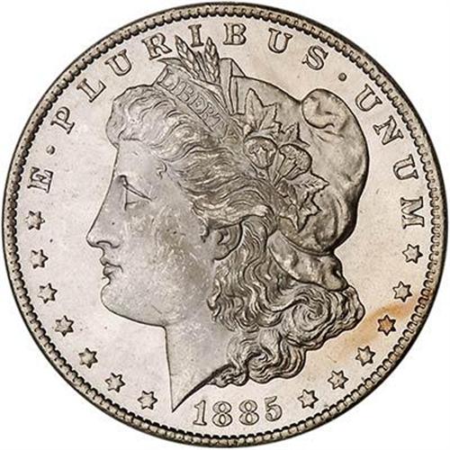 Shimmering mint brilliance is seen over each side of this fully struck near-gem. Devices foursquare and bold throughout with a few scattered marks on the portrait, some light golden amber toning to the right below the bust.