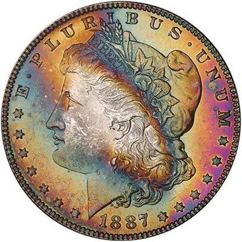 A riveting example of this always-popular Type. This sparkling example is colorfully toned and very well struck. Struck with preciseness only now and then found. The rainbow hues cascade around the surface with an uncommonly rich, beautiful iridescent sheen.