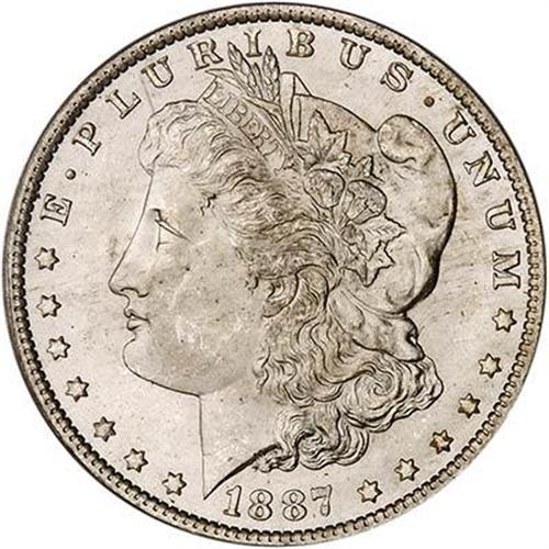 We are pleased to offer the a thickly frosted, Gem quality representative of a desirable New Orleans Mint issue. Some naturally occurring streaky "old silver" patina crosses the obverse. Clockwork precision seen in the centers, unusual for 1887-O.
