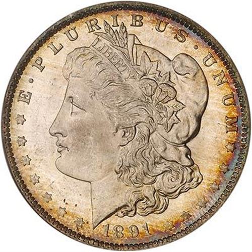 Even the finest, most delicate detail seen on this coin struck with uncommon exactness for the issue. An exciting example of a definitely elusive New Orleans mint date in gem condition, this toned 1891-O displaying sharp cartwheel luster with fantastic golden brown (almost amber in color) peripheries with the reverse more involved than the obverse in this delightful effect. There is even a band of shimmering iridescence inside the rim dentils.