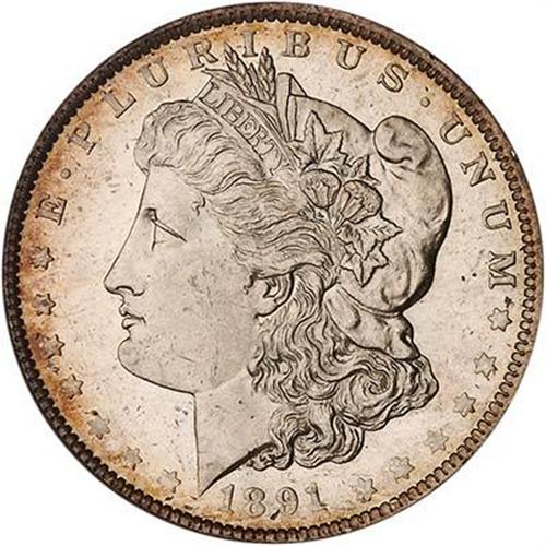 Another "name" group of Morgan dollars, the coins that trace to the Shapiro collection are always fresh, original and glittering. It is those three descriptors that this coin earns. Mostly silver-bright, however, some golden brown toning has formed at the rim on both sides. A few little tics and other bagmarks on the face and around the devices are of little note. Scarce with deep mirror reflection.