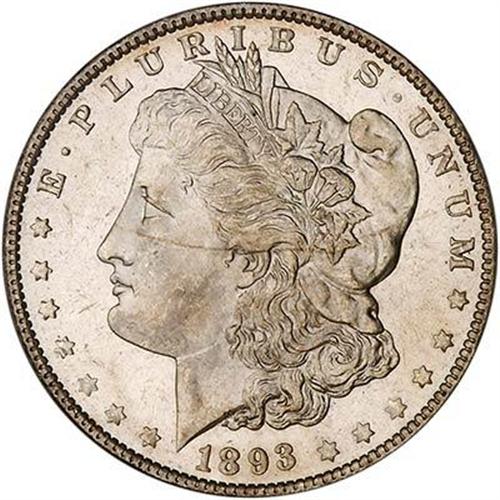 Somewhat more heavily toned than the MS64 before it, yet still a delightful specimen for the specialist in this difficult series of large silver coins. Devices as "sharp as a two-edged sword" as they say, considering that 1893-O has traditionally fallen into the "poor strike" category of dates. Frosty throughout. This date is sometimes referred to as an absolute rarity, since one can easily tell from its mintage of only 300,000 pieces, which is the lowest output of any O-mint Morgan Dollar. High grade Uncirculated coins are very seldom offered nowadays and always quickly snapped up by knowledgeable collectors.