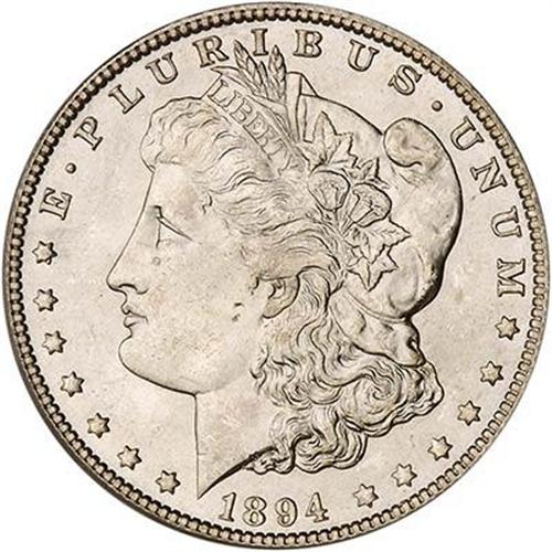 A couple of tiny spots on the jaw below the "lovelock" curl. Silver cartwheel luster radiates from the surfaces of this attractive coin. Fully struck in all areas with pinpoint detailing except in the exact center of Liberty's hair where a few strands come together as one (a typical effect seen on New Orleans issues of the 1890s). Atypical is the overall smooth luster and glowing originality for 1894-O.