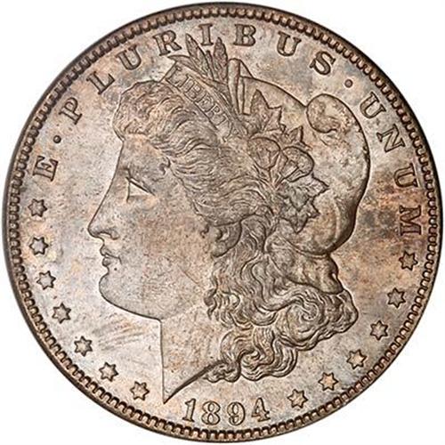 Both sides display the typical "look" for this S-mint delivery: smoothly frosted surfaces, rolling cartwheel effects, and resoundingly bold devices. In fact, we go so far as to call them "razor-sharp" devices. Medium antique golden brown color without the usual plethora of bagmarks or scuffs breaking the satin flow. Notice how Liberty's cheek and neck are particularly problem free; a clear advantage over the few others graded MS65 by a first-tier grading service.