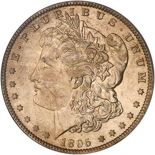 Scarce in all grades, the 1895-O is an attractive and highly lustrous Dollar when found in the better levels of Mint State. This piece is well struck with the usual thick mint frost and pleasing, semi-satin fields. Only the centers exhibit softness. The coin's brilliance is tempered by a nice layer of warm golden patina throughout the obverse and also playing its role on the reverse, only this time mainly at the rim. With 450,000 made, and with the average quality no better than Good or Very Good, this year has quickly come to the forefront among semi-key issues. We expect to see a great deal of paper ruffling and squirming in the seats when the time to bid approaches.