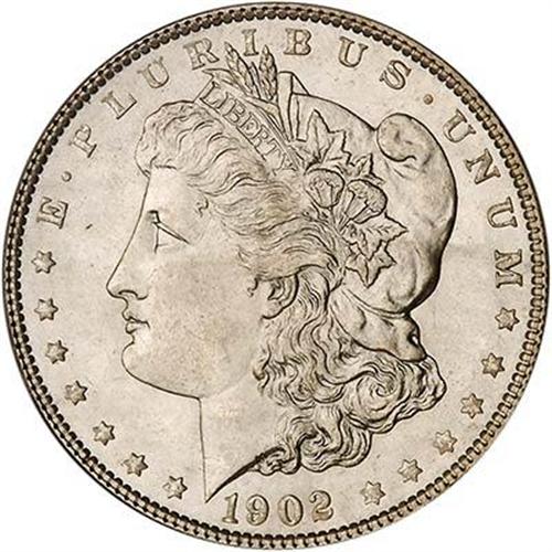 Bright silver color bursts from original surfaces unmarred by toning. A strong strike as well, making this a desirable specimen. The issues of 1902-04 from this mint display smooth, pleasing satin-like texture unlike the more robust flash of earlier dates or the heavy frost of a Carson City issue from the years in which that mint made the Morgan silver dollar.