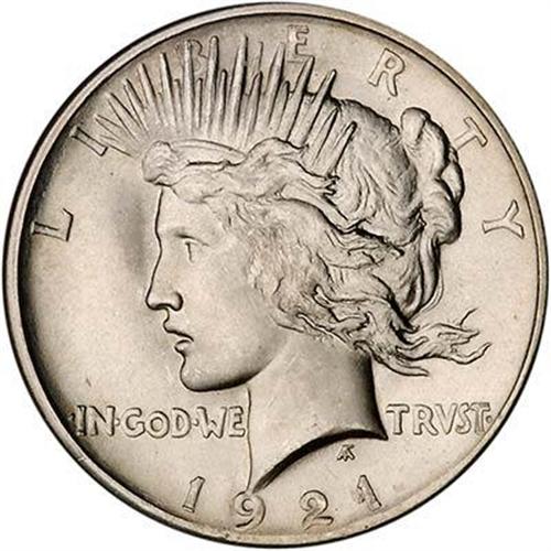 A fantastic example of Anthony De Francisci's beautiful new design and the only date generally available in high relief. George T. Morgan, Mint Engraver at the time and whose own design had been replaced by De Francisci's, lowered the relief of the electroplate model after 1921 by hammering it with a flat board! The subsequent lower relief was used for the remaining issues of Peace Dollars, 1922 to 1935. Morgan elected to further cut down the relief by lessening the striking pressure on the coin presses, ostensibly to reduce die wear. In a similar fashion to the beautiful 1907 High Relief Double Eagles, De Francisci's beautiful 1921 was thus greatly modified to adapt it to normal coin production. Unfortunately, it is impractical to strike each coin with several blows from the dies to bring up the high relief. It is also not practical to increase striking pressure to the point where the dies wear rapidly and breakage occurs. As with other high relief designs, the mint had to compromise the artist's concept to meet the demands of efficient coin production. This explains the importance and predominance of 1921 High Relief Peace Dollars, and their ability to elicit awe and to raise eyebrows when found in top quality like this. (Housed in NGC holder 1816776-010.)