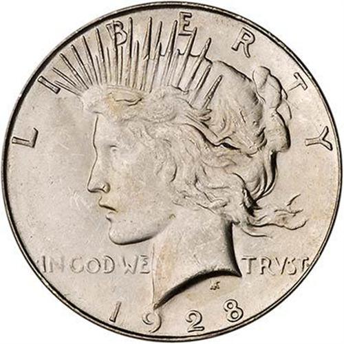 Satin fields rippling with cartwheel luster and scattered bagmarks. The more raised designs stand out nicely against this finish. No toning, just silver-white color. Following the close of minting in 1928, there were no additional silver dollars made until 1934 at any of the three mints then in operation.