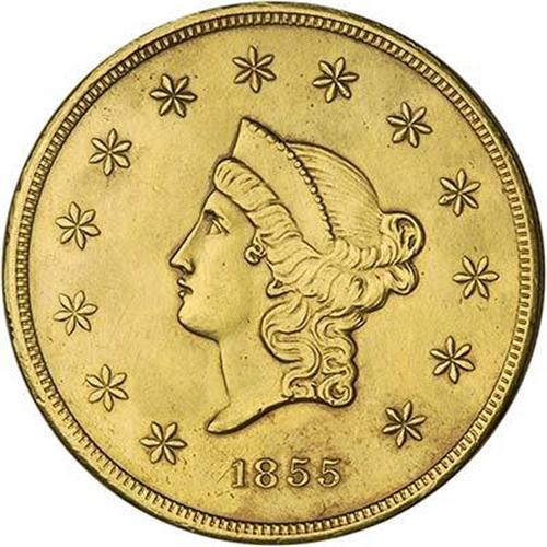 Unlike the $20 Wass, Molitors, the $50 denomination has a plain coronet. Issued in quantity beginning in May 1855, possibly fewer than 75 exist today after heavy melting. Breen confirms in his encyclopedia of United States coins what we have already described about the issue "usually heavily dented, nicked, and scratched". A prime candidate for a collection of California "Territorial" or private gold issues (even though by this time California had become a state of the Union and so no longer had Territorial status).