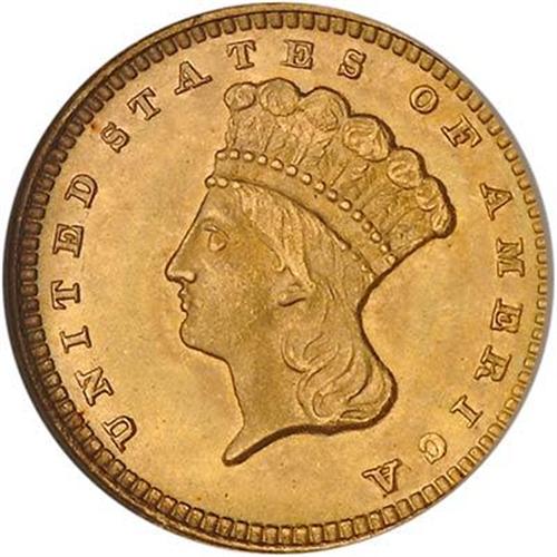 Among the finest known, with flattering mint luster and a complete absence of the usual abrasions, this heavily frosted gold coin is every bit the Gem. Clear-cut devices point to it having been giving a full strike by the dies, this being one of the regular 1874-dated pieces for which LIBERTY disappears on the headband. Researchers assume the absence of LIBERTY was caused by the die being lapped to remove clash marks (a common occurrence on gold dollars). The procedure removed the most recessed areas of the design (which would be the highest areas on the mirror-image steel die), and this affects LIBERTY foremost. The coin is breathtakingly beautiful, superb in every respect, and quite possibly among the finest known. (NGC serial number 1721015-010.)