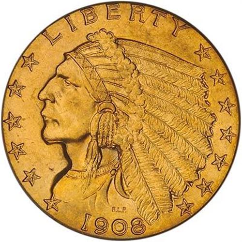 A sharply struck Gem that has outstanding detail on the war bonnet and only a hint of diagnostic weakness of strike on the eagle's shoulder (this defect in the design would be remedied in 1909-29). Lustrous with bright golden to honey-gold patina. Both sides are very well preserved for an Indian $5 with no discernible price-reducing marks even on close examination.