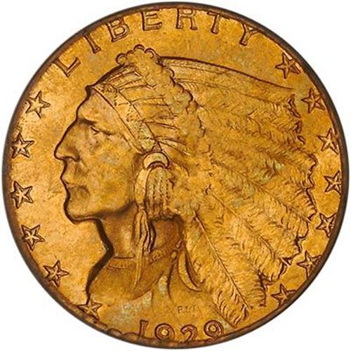 Blazing golden frost with a warm orange-colored quality to the luster and toning. Tops for a MS65 as indicated by the near-absence of marks and major relief portions being sharply struck. For some reason, probably having to do with the unique feature of its recessed relief, Gems are especially difficult to find, more so, in fact, than the earlier Liberty quarter eagles of the late-18th and early 19th centuries.