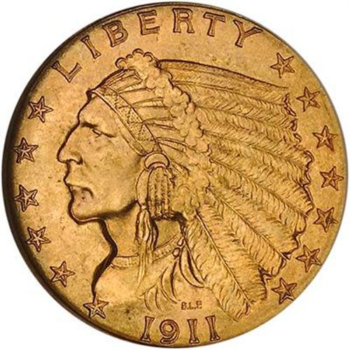 A coin featuring bold devices, an equally sharp, clear mintmark (very desirable) and splendid color. The nice flow of golden frost from center to periphery has acquired natural orange toning through the years. This, as every advanced collector knows, is the key date in the set. Only 15 Indian $2.50 gold pieces comprise the 1908-1929 series, but only one has minuscule mintage, great rarity in Gem MS65 quality, and high preference among collectors, and this is it! Mintage just slightly over 55,000 pieces! Most survivors grade Extremely Fine or About Uncirculated.