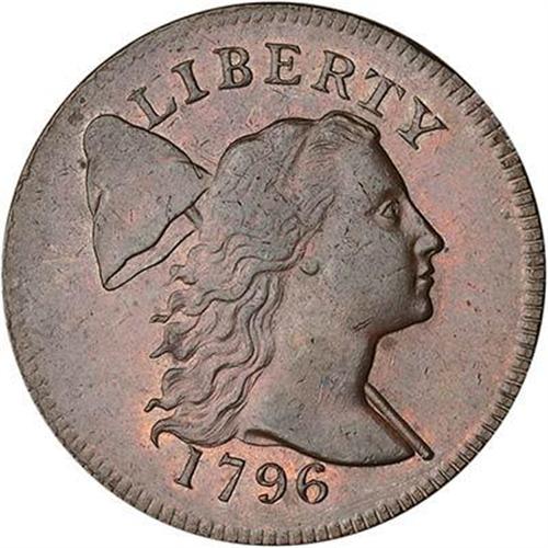 Choice glossy steel brown with very faded mint red peeking through in portions of the fields and protected areas, mostly on the right half of the obverse, and hints of attractive light bluish steel overtone in protected areas. The surfaces are smooth and reflective, the prooflike fields a product of new, freshly polished dies. The only marks are a thin, light nick on the throat, a small spot of darker steel brown toning low on the neck, a deep planchet chip under the N in CENT (as struck), and a faint hairline scratch that skips across the surface from the rim over TA in STATES to the O in ONE. EDS, Breen state I. Called MS60 and finest known in the Bland/Breen condition census, one of only a very few mint state Liberty Cap 1796 cents of any variety. Comes with an impressive provenance.