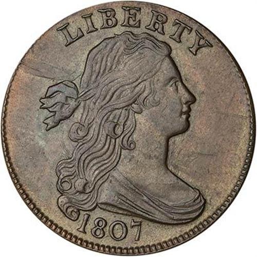 Glossy golden brown and tan with underlying frosty luster covering the fields and protected areas. The satiny mint luster is somewhat subdued by a thin layer of natural oxidation, but the surfaces are virtually flawless. The only marks, and all are trivial, are a speck of slightly darker toning in the field close over the bust tip (which can be used to match this cent to the S-271 pictured on the cover of the famous Helfenstein sale catalog), a very tiny tick high on the shoulder near the hair, and a very faint, thin scuff from the base of the second T in STATES to the leaf over the E in ONE. M-LDS, Breen state VII. Called MS63 and CC#1 in the Bland/Breen census. Noyes also says MS63 and has this cent the stand-alone finest of the variety (his photo #28160). A bath and proper brushing to remove the layer of oxidation and uncover more of the mint luster below should improve the grade, but this is a spectacular (and famous) cent as is.