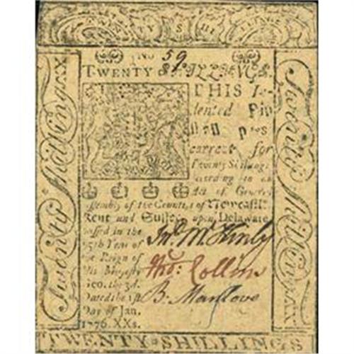 <B>Delaware 20 SHILLINGS January 1, 1776. Crisp Uncirculated.</B> An inexpensive "Type"