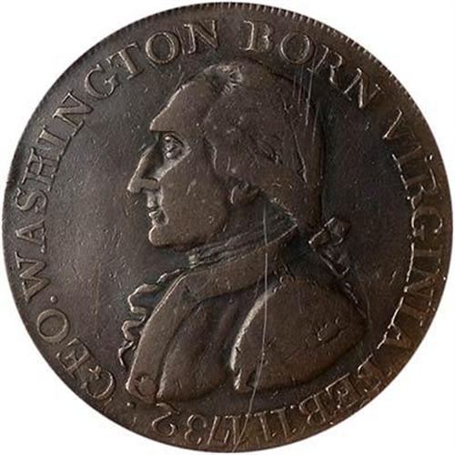 Sleek deep chocolate to steel brown patina with very choice surfaces, balanced wear, and great rims. Portions of the legend on the reverse weak at centers (as almost always found), but clear for the most part. There is only one way of telling the difference between a so-so collector and a sophisticated buyer, and this is by his choice in historic American colonial pieces. This coin has everything a connoisseur of the series could want.