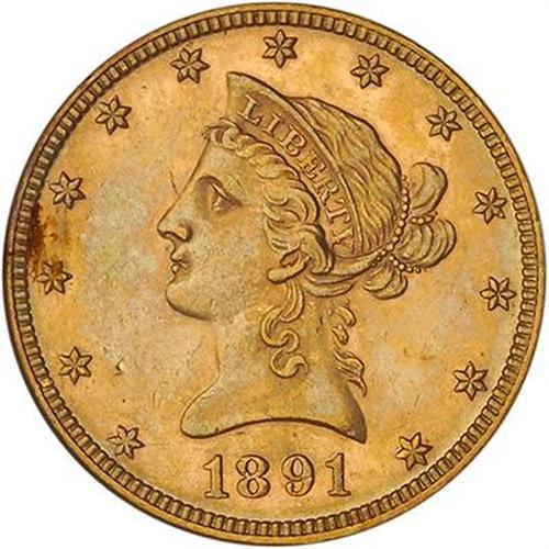 A lustrous coin with light hazy toning and average surfaces. Only 91,868 pieces minted this year. Curiously there were no San Francisco mint $10 Liberties struck in 1890 or 1891, which is unusual for America's far Western minted tended to be prolific in this period.