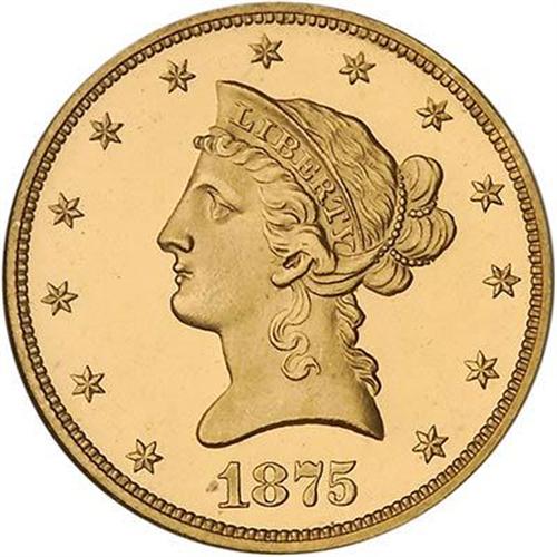 A downright dramatic two toned or "cameo" Proof exhibiting brilliant golden bloom and resplendent mirror quality. The "orange peel" effect is in full operation on both surfaces, and is clearly evident (best when viewed under low power magnification). Extremely rare in all grades, only 20 Proof Eagles were sold at the time, and collectors, in the intervening 130 years have tended to mishandle all too many of the remaining survivors. Here is a stellar coin that is clearly head and shoulders above the rest in terms of originality, surface freshness, sparkle and gleaming "ultra cameo" effects. The coin is housed in NGC holder 1720205-001 and may become a centerpiece for a major rare coin collection.