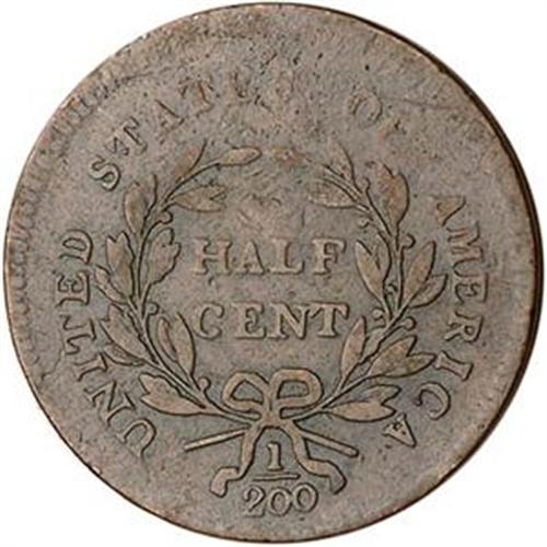 <B>Liberty Cap Half Cent. 1795 C-6a R2 VG10. Without Pole. Thin Planchet.</B> Nice glossy mediu