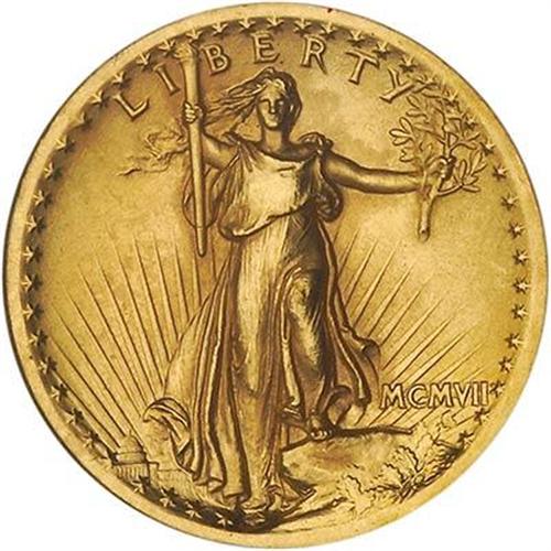 As was true of the 1907 Indian designs for the Eagle, the present piece was the result of Theodore Roosevelt's orchestration with Augustus Saint-Gaudens, America's foremost sculptor at the time. It was originally proposed that the entire spectrum of American coinage would be redesigned, from the lowly One-cent piece through the Double Eagle. In correspondence, Augustus Saint-Gaudens felt that the 1857 Flying Eagle Cent was the finest motif found on any American coin. It is interesting to note that this same flying eagle turned up on the Double Eagle offered here.