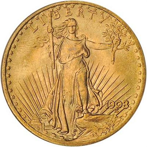The luster is also superior for the issue, and moderately bright fields peer through rich flaming-gold coloration. All devices were struck with such force and determination by the dies that elements show razor edges for the design.
