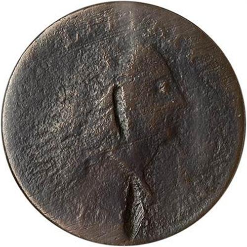 Slightly glossy dark chocolate and olive brown. The surfaces are covered with light to moderate corrosion, but there is no verdigris. There are, however, three very strong contact marks. These include a vertical gash through the 93 in the date, another in the hair left of the ear, and a third pinch on the rim at the T in UNITED. The date and legends are visible, although only portions of the 93 remain due to the contact mark. There is a scuff of fine scratches across ERTY in LIBERTY as well, but these are not a distraction since the deep gashes grab your eye at a glance. EAC grade net AG3. The attribution is noted on the ANACS label.