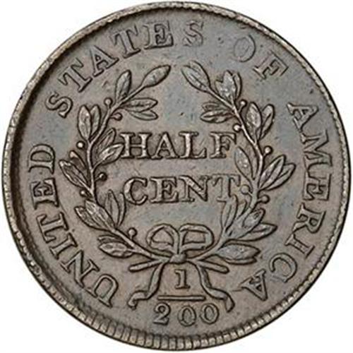 <B>Draped Bust Half Cent. 1805 C-4 R2- VF30. Large 5.</B> Five points sharper with a few too ma