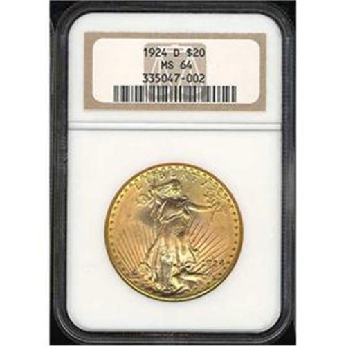 A virtual gem at this level, and featuring warm pinkish to full golden beams of frostiness. Faithful to every detail from a full blow by the dies, the eagle and Liberty stand out in full relief. Many Denver Mint $20 gold pieces of this issue were melted in the 1930s.