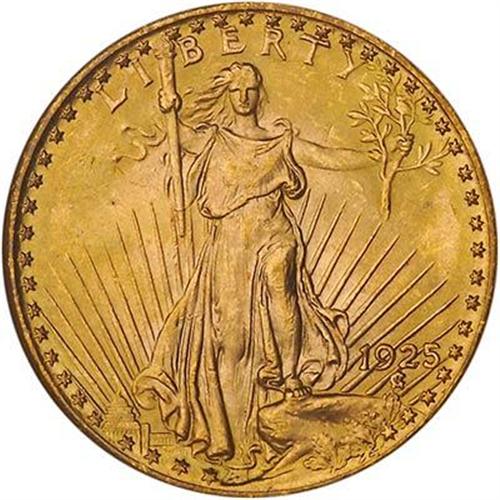 Frosty luster and well struck. The tension surrounding the gold price this year has attracted buyers to high quality (primarily MS65 and above) double eagles. Activity is growing, supplies dwindling, and only a few gemmy examples like this 1925 can be found without much diligent searching.