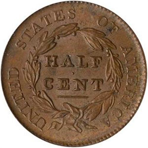 <B>Classic Head Half Cent. 1829 C-1 R1 PCGS graded Mint State-64 Brown.</B> Frosty light steel