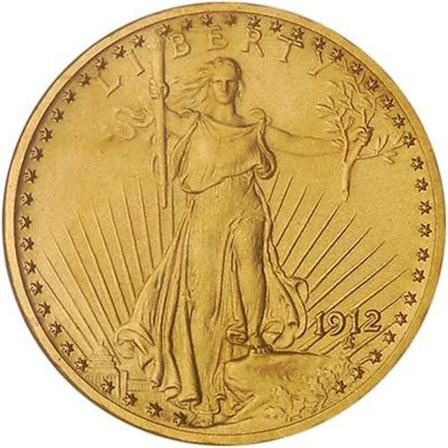 Middle year of the Proof pieces of this design and one of the most resplendent coins of its denomination. Fine sandblast or matte Proof finish virtually perfect, the texture on 1912 is heavier than 1913-14 with tan to brownish hints over the natural gold color, and minutely lighter than the 1911, the microscopic uniform granularity showing bright facets. A partial reverse knife-rim. Nevertheless, amongst the finest known! (In NGC holder 1633981-002.)