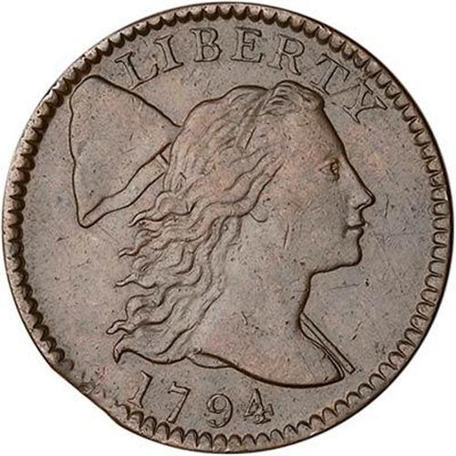 Glossy medium brown and chocolate. The surfaces are smooth, completely free of corrosion or verdigris. Only a few trivial marks from choice, including a thin vertical nick in the center of the jawline and a tiny nick on the center seraph of the E in CENT. MDS, Breen state III. There is a slightly curved planchet clip affecting the dentil left of the date and the opposing ones at TE in STATES. An attractive example, at the lower end of the condition census for this popular "Exact Head of 1795" variety.