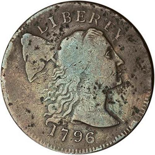 Sharpness near F12 but there are a couple dozen small pitmarks scattered about the obverse, strongest in the field before the neck. The pitted area before the neck was lightly smoothed and there are traces of light greenish verdigris in many of the pitmarks. A couple small, light rim bruises on each side round out the list of notable defects. Chocolate and dark steel brown, the surfaces slightly glossy. The date and legends are all strong. E-MDS.