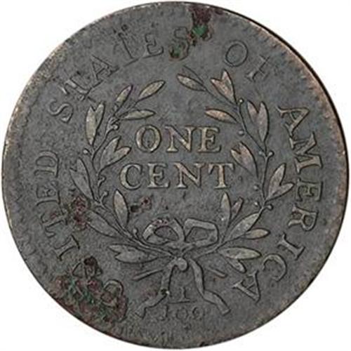 <B>Draped Bust Cent. 1796 S-103 R4- LIHERTY Sharpness of F12+ Net VG8.</B> Steel with black and