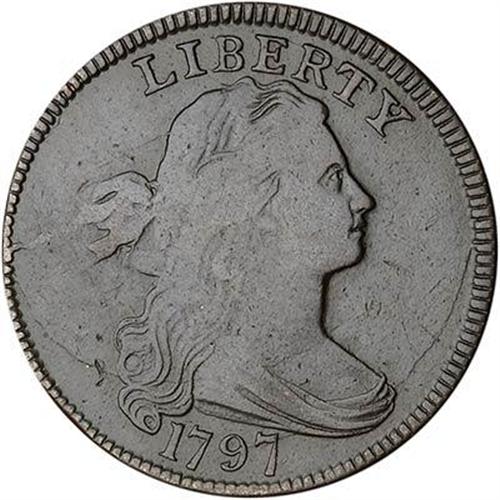 Close to F12 but there is uniform extremely faint roughness under the glossy dark steel brown and olive brown patina. No verdigris or marks other than a small nick in the field off the chin and another in the field left of the lower curls, neither significant. LDS. The date and legends are strong, and the grip marks on the edge are bold.