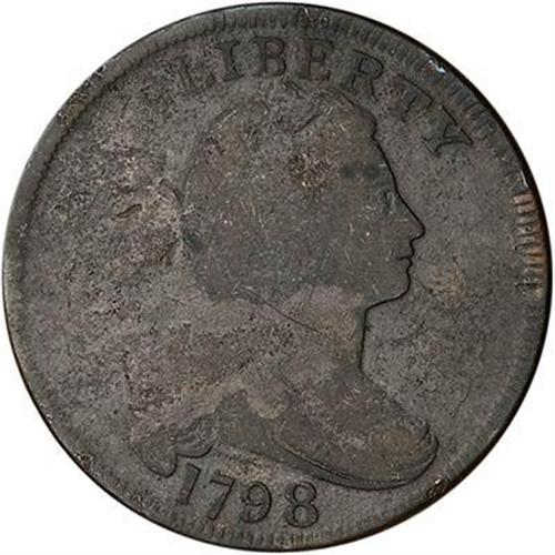 Slightly sharper but the surfaces are dull from uniform extremely fine roughness. No verdigris, and the only marks are a few tiny ticks in the hair left of the eyebrow and a small rim nick at the second A in STATES. Matte dark steel with patches of lighter chocolate brown on both sides. MDS, Breen state II, with minor swelling at OF. The date and legends are strong.