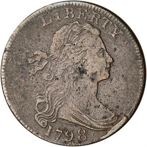 Sharpness near VF20 but covered with very fine granularity, and there are some pitmarks scattered about both sides as well. The notable pitmarks are on the jawline under the earlobe and in the dentils over the first S in STATES. Slightly glossy chocolate brown with darker olive toning in the pitted spots. LDS, Breen state VII, with a strong cud break at the bust tip. The date and legends are all strong.