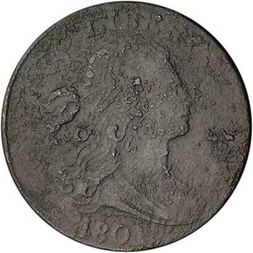 Sharpness F12 but moderately corroded with specks of dark greenish verdigris on both sides, strongest near the rim before the neck and over S-O on the reverse. Slightly glossy very dark olive and steel. The date and legends are clear in spite of the roughness, and the 3 die-cutter errors on the reverse are obvious. Ugly but nice details. EDS.