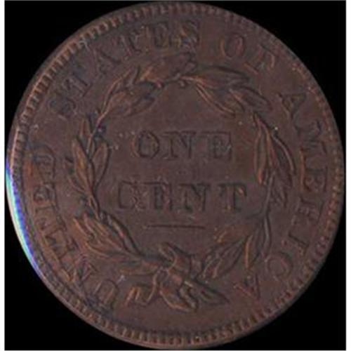 <B>Coronet Head Cent. 1837. Plain Hair Cord. Sharpness of About Uncirculated 55.</B> Cleaned li